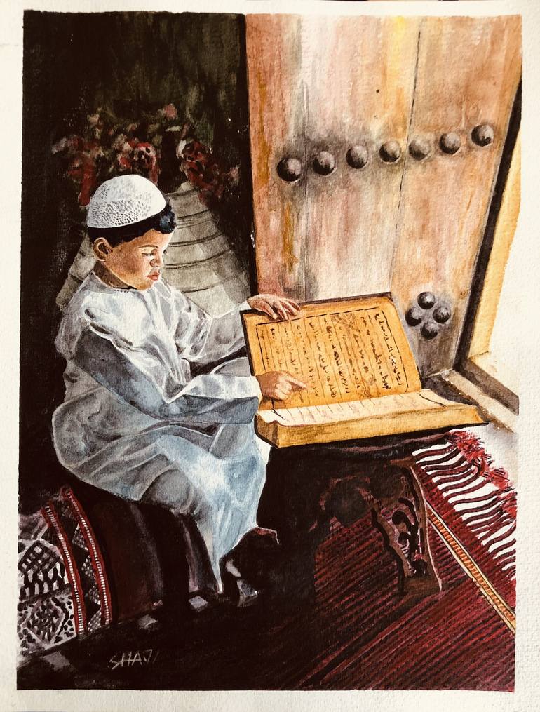 One of the morning I saw the boy reading the Quaran. It was a pleasant moment , and I decided to draw the beautiful moment.