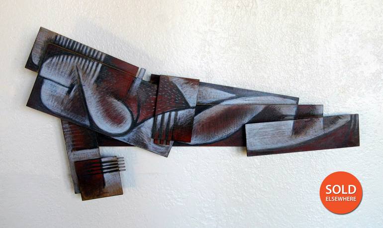 Please do not buy. This sculpture has been sold elsewhere. I put it here to show the evolution of the Construction Series. Reclining Nude, Construction 57, is both a wall sculpture and a drawing. It is a drawing composed on multiple surfaces. The work is reminiscent of cubism and its division of fo...