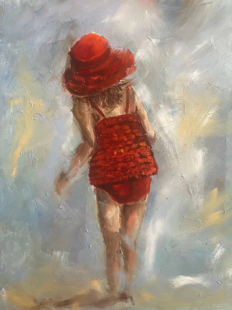 I captured this little girls playful nature with loose brush strokes and lots of dry brush techniques. She were in a world of her own having so much fun on the beach. Just a little moment of happiness