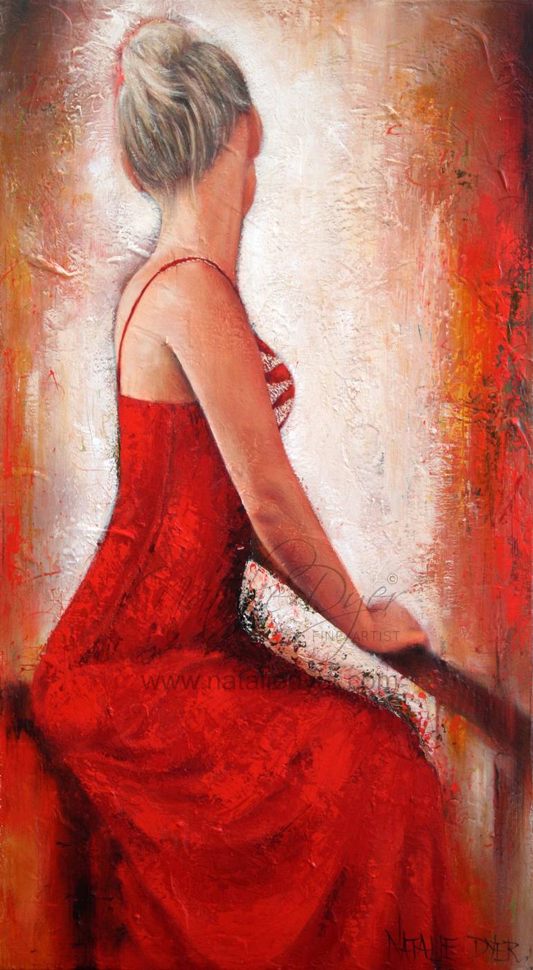 "Red Elegance' This work was created to portray opposing and contrasting viewpoints of this lovely young woman. Her pose, dress and posture indicate strength of character, yet at the same time her lovely neckline and the fall of her hair elude to the soft and sensual . There is lovely texture in th...