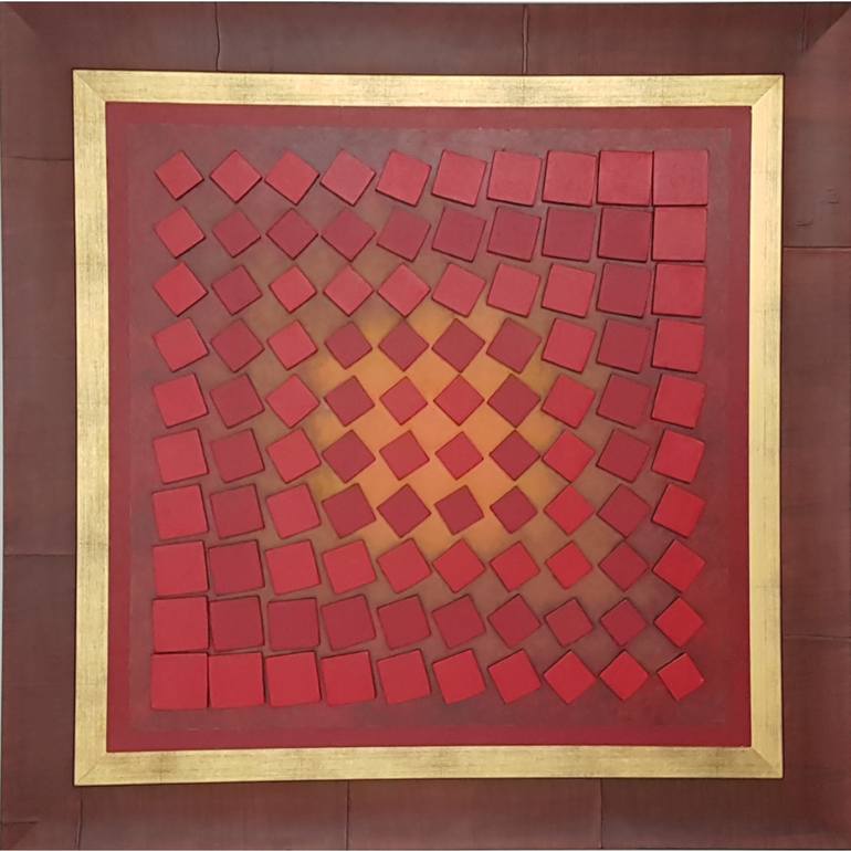 Red squares moves on a red surface. The optical effect is alluring.