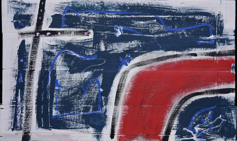 Red Line - 'the thin', max rpm', 'to the limit'. Me I prefer pragmatism. Boundaries are always crossed. I now prefer to create in a more intuitive way less of what a I see (outside), more of what I feel. I really enjoyed creating this painting. Painted in acrylic on canvas and recycled wood ...