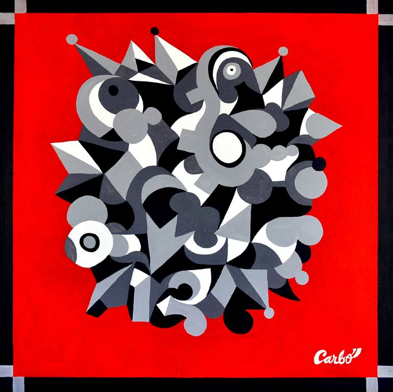 This is an abstraction experimental piece as a study of hard edge minimalism combined with a bit of urban street art and modernist art deco. I called it red moon because of the impression, feeling and high impact it gives when seen in large format of 4 x 4 ft.