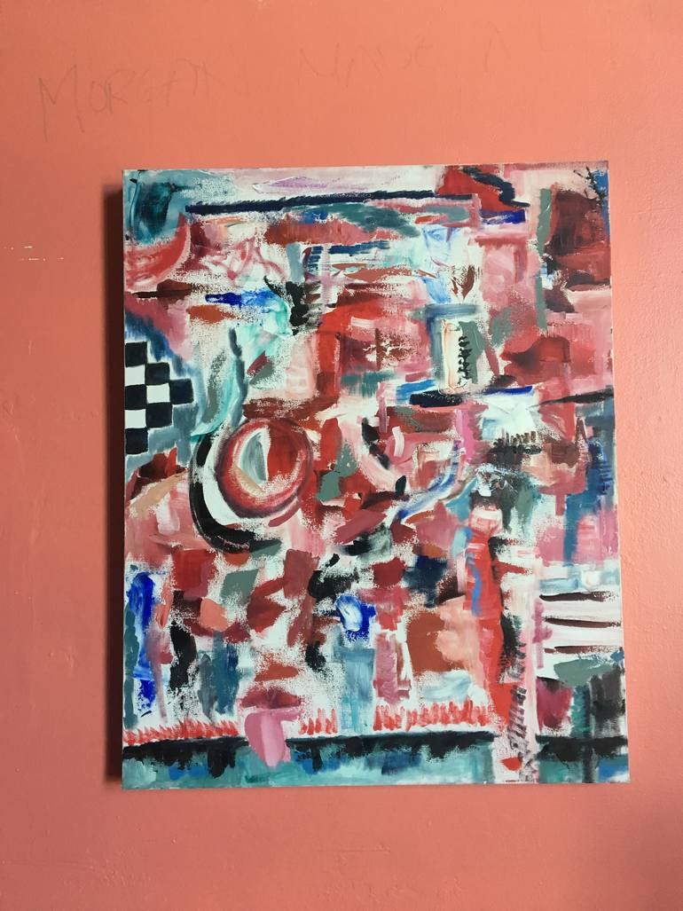 Growing up I really disliked the color red and as I grew older I began to like it and I wanted to make a painting with mostly red. This was also one of my first paintings I made when I moved to Los Angeles. I also only paint with oils so the medium is oil paint.