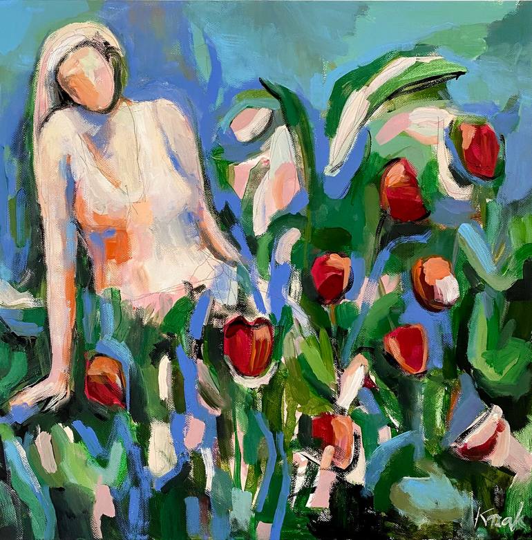 Original acrylic painting on canvas. Inspired by women and nature. Painting is signed.
