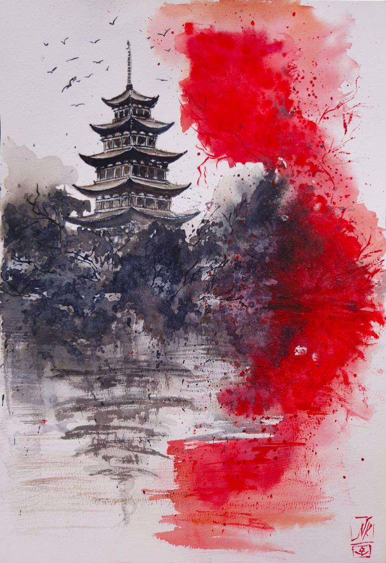 "Red Wind" is a dialogue between stability and change, tradition and upheaval. This painting contrasts the structured harmony of Eastern architecture with the violent swirl of crimson gusts, evoking a sense of tense equilibrium. Deep shadows symbolize established traditions, resisting the fiery flas...