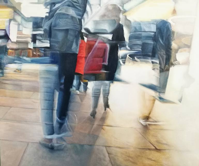 My works are inspired by the people movement, in this recent work (ghost series) figures are walking in the city of Torino,in one important street of shopping.