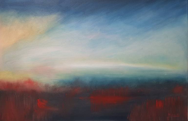 Oil on canvas This artwork is an oil on canvas abstraction that captures the enigmatic beauty of the swamp. The painting combines shades of deep blues and intense reds, reflecting the transition between day and night. I have played with it with the contrasting play of lights, representing the sublim...