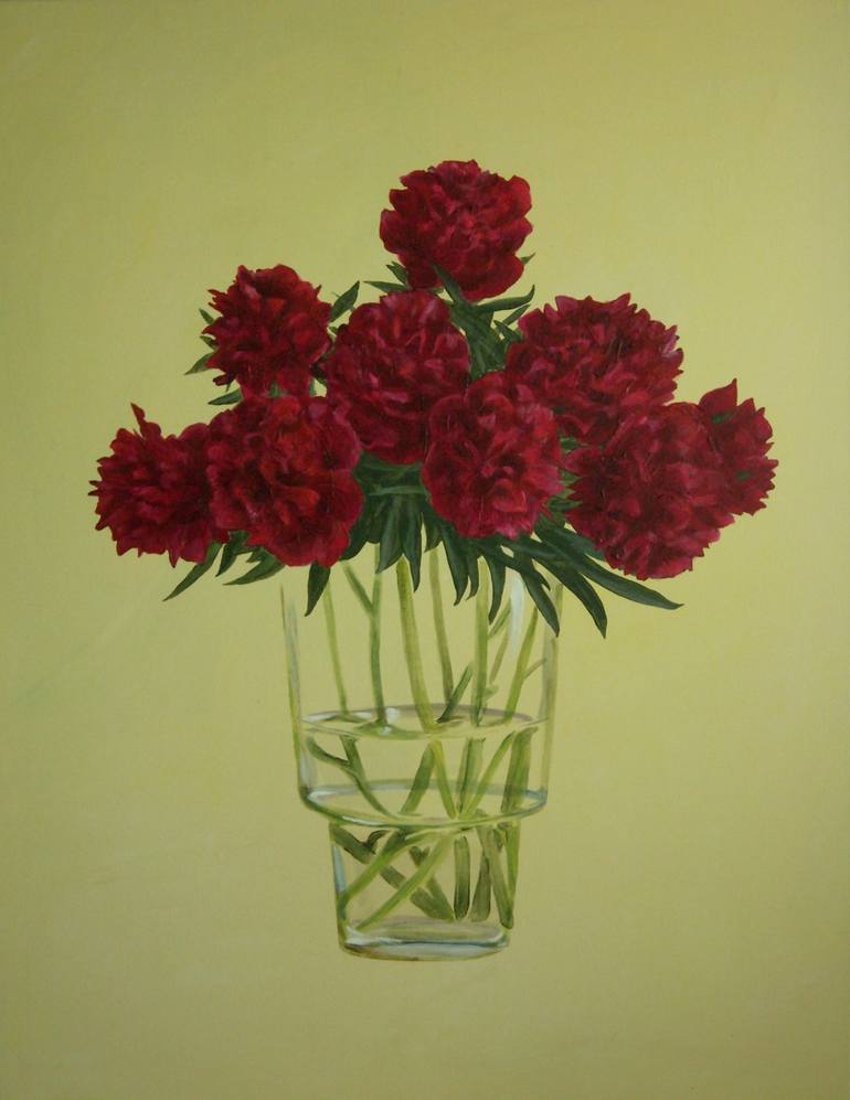 Red peony from our garden. It was interesting for me to left painting on this stage, without detailed background, but then I just add a little general tone of sunny day.
