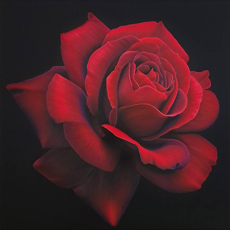 ORIGINAL OIL CANVAS PAINTING TITLE: Red rose MATERIALS: Professional quality artists oil paints on a canvas stretched around wood frames. SUBJECT: Original Red Rose Painting on Black Background SIZE: 31.4 x 31.4 inc. / 80 x 80 cm THICKNESS: 0.7 inc. / 2 cm This is an original, hand-painted rose f...