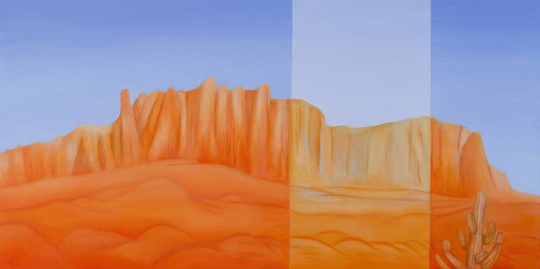 Inspired by the desert landscape of Arizona, with red rock formations and saguaro cactus. Deep edge canvas / high quality linen stretched on aluminium frame / sides are painted white and ready to hang.