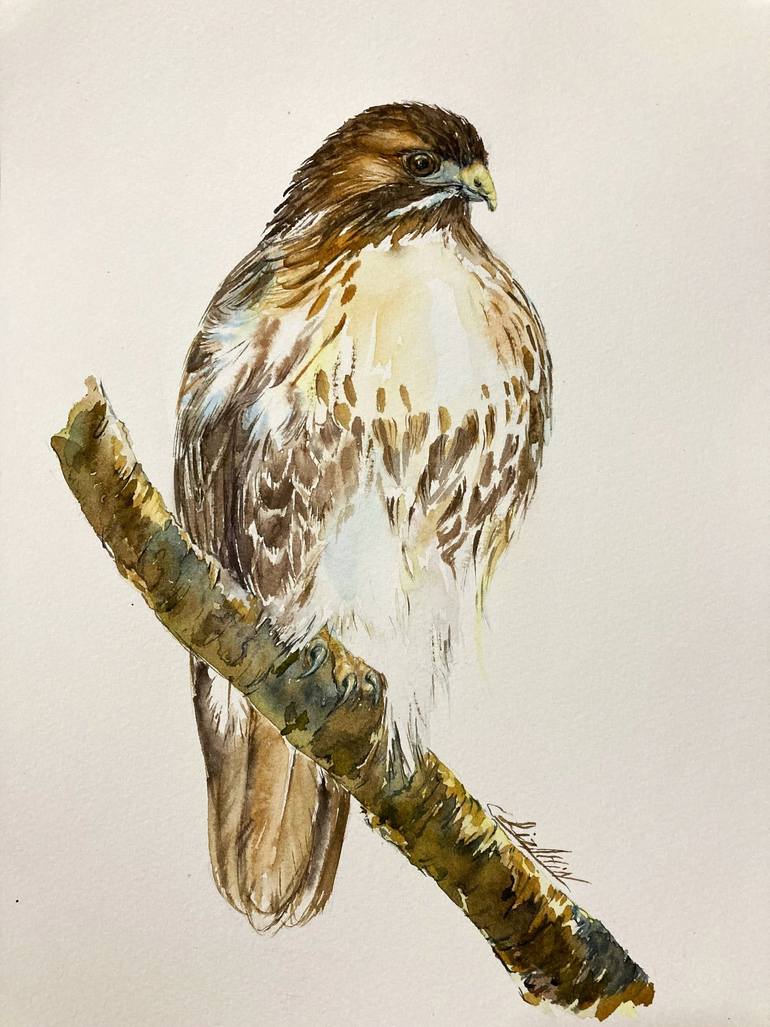 Red - tailed Hawk . Cold pressed acid - free 100 % cotton watercolor paper Saunders . Signed on the front and back side by artist Liz Altin . Elevate your art collection with this stunning original watercolor painting of the Red-Tailed Hawk, a majestic bird of prey, exclusively available in our Sa...