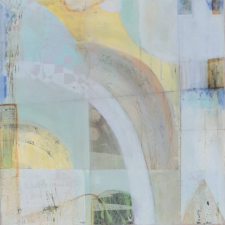 Reflections. Thinking about your life in a calm, comforting way - about all joy and excitement, but also about days of sadness that made us appreciate more these beautiful or even neutral moments of our life. Multilayered painting with some colorful yellow and teal elements, but also with greys an...