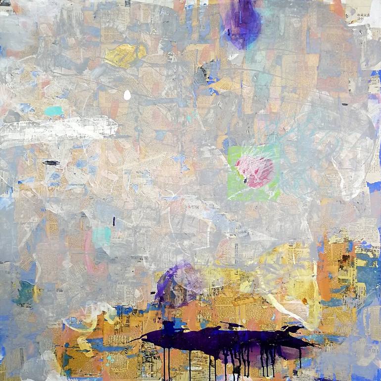 Impressed by my latest journey to Japan in 2018. In this painting I used Japanese newspaper sheets and many layers of color, varnish and Japanese local ink. Original acrylic painting on linen canvas. Mixed media. Signed in front and back. The sides are naturally gray. The canvas is varnished, del...