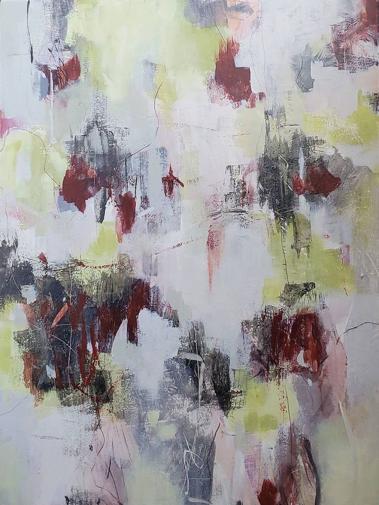 The gift of discovering my passion for painting came into my life seemingly out of the blue. I often wondered what it would be like if I could paint. The wise part of me knew that I would never know unless I tried. One day I decided to try myself at painting. Very soon I realized creating art is my passion, my very much needed outlet. Creating art is a great teacher. I keep learning about myself through this journey. My art brings clarity to what I like and don’t like, what I’m afraid of, what motivates me, what helps me to get out of the rut. My work is primarily abstraction. I like to create images that evoke a reaction, a feeling in me. And since human feelings and emotions are universal, the goal is to conduct them to my viewers. I work with colors, shapes, and lines to orchestrate them in a way that is visually appealing to me. My paintings are usually multilayered, with a rich history lurking beneath the surface. As I add and subtract shapes and lines, the painting evolves and develops its own history. I don’t try to envision the end result, in my process I experiment and search for what I want to say until I feel I got there. For me planning a painting doesn’t lend itself to coming up with work that is authentic, spontaneous, fresh, and alive. I wish for my work to be a visual refuge, a moment of wonder for the viewer.