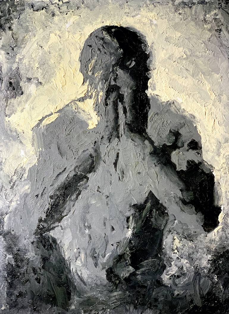 "Resilience" is a self portrait during an extremely low point in my life. Since returning from Afghanistan, I have had trouble with depression, anxiety, and it worsened enough for me to contemplate suicide. "Resilience" is the piece that I feel saved my life and brought me closer to painting.