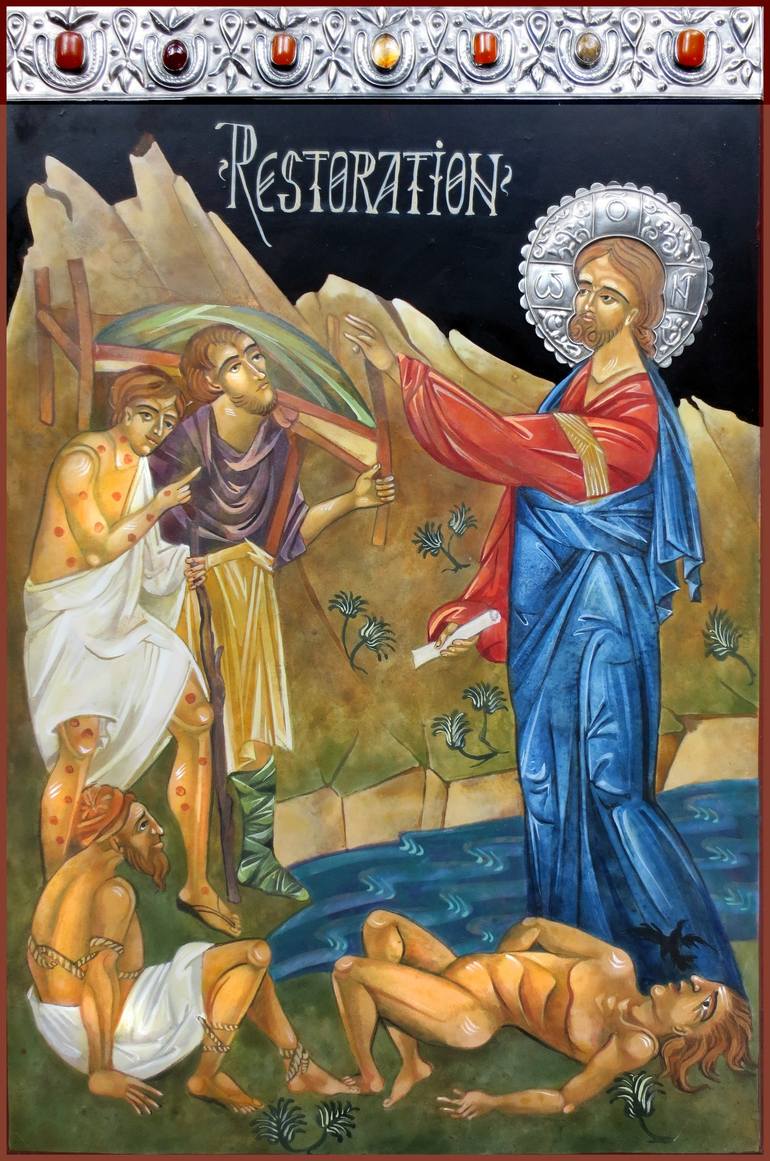 Jesus Christ stands at the center of the icon, illustrating his involvement in our lives. He has been walking by the Sea of Galilee. On the opposite side of Jesus, we have those in need of healing. They brought those afflicted with various diseases to Jesus to be healed, one oppressed by demons, on...