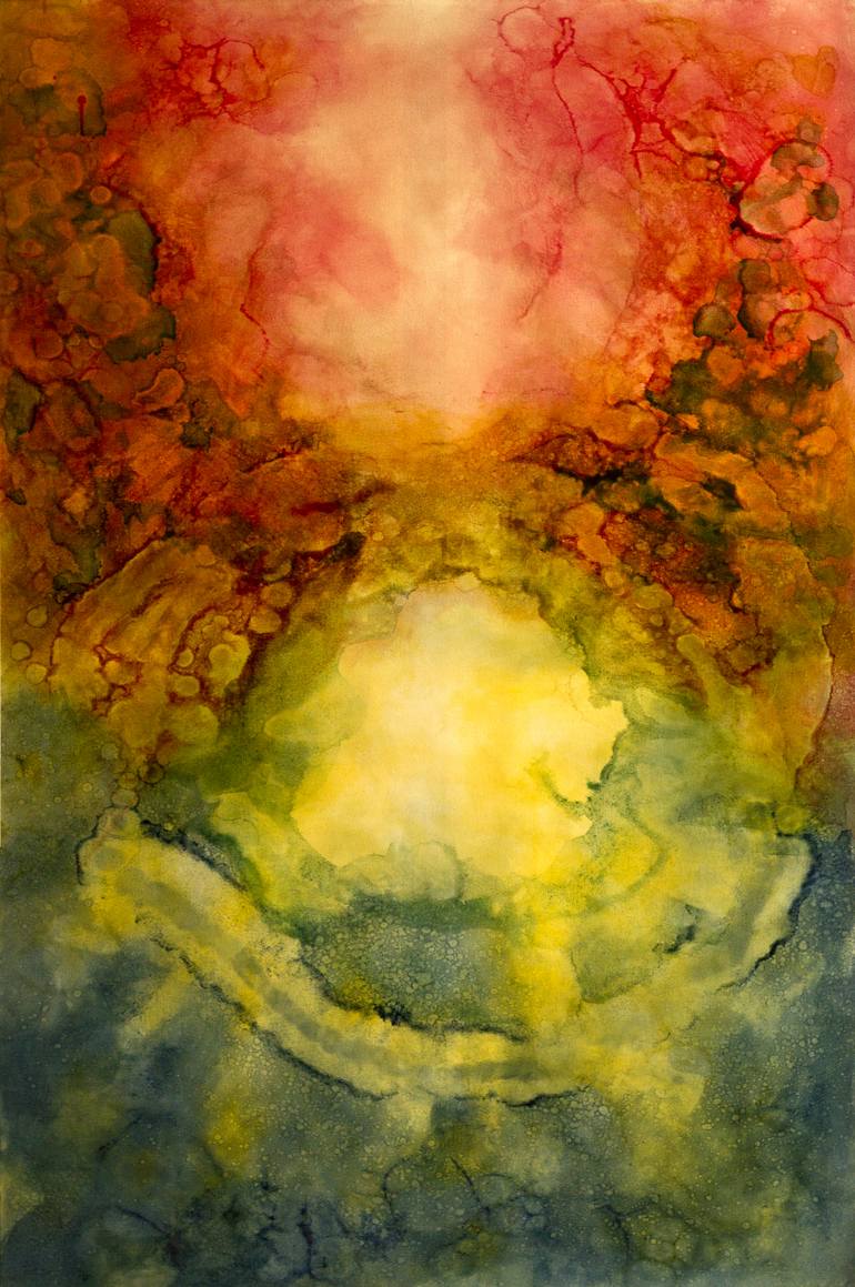" Round Saturnalia " is the name of the work I present belongs to the Saturnalia series. From the color, I want to convey its essence itself, its feel in an atmospheric mode ; vapor, mist , air , movement, transformation. Research on the physiology and color perception, are essential for the develo...