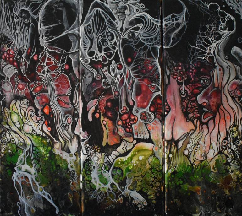 One of my first paintings that embodies my style. Three is magic We need true understanding, Or we end tragic! White shines the power of will Set your intention and shape your best drill. Blackness embodies the power of fear Look at your limits, don't shed a tear. Red glows the power of sacrifi...
