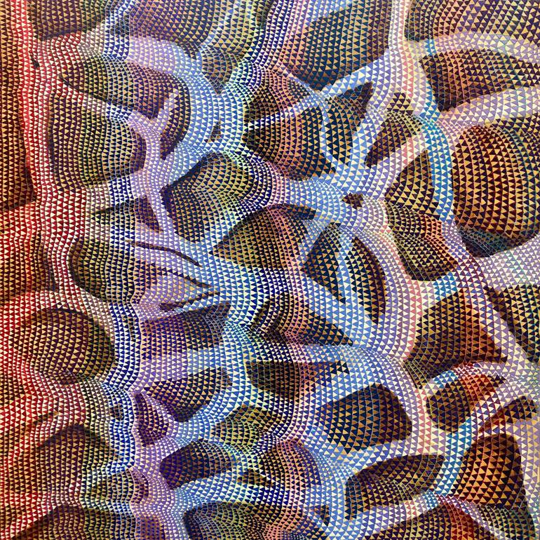 This work explores the themes of growth, repetition, movement and opticality. Multiple layers of paint are applied - the rhythms often in opposition to each other - creating a densely tangled, unstable encounter with the pictorial surface; tricking the eye and confusing the brain. The title Rhizo...