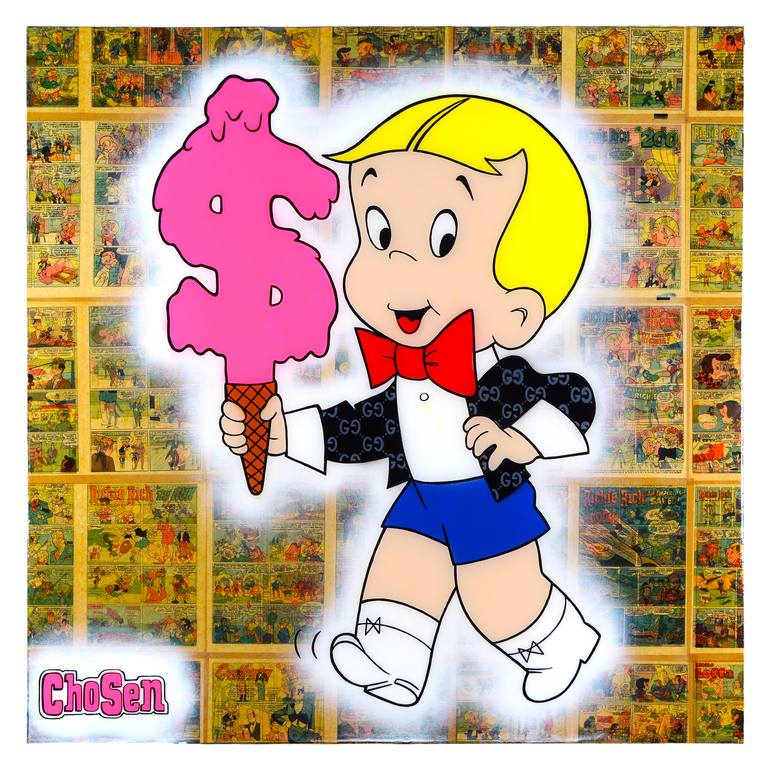 My work represents a contemporary reinterpretation of the legacy of iconic pop art masters, infused with my own conceptual perspective. Each piece draws upon the visual language of Andy Warhol’s cultural symbolism, Roy Lichtenstein’s graphic narratives, the layered collages of Robert Rauschenberg, the raw expressiveness of Jean-Michel Basquiat, and the dynamic spontaneity of Jackson Pollock, while weaving in a multitude of other cultural references. I explore the tension between opposites, merging rare vintage materials — such as mid-20th century newspapers, comic books, and stock certificates — with modern artistic media including spray paint, acrylics, markers, and inks. Accents of gold leaf, authentic banknotes, and epoxy resin elevate each composition into a multidimensional art object. Within my visual universe reside distinctive characters of my own creation, inspired by and evolving from well-known comic book icons. This synthesis of influences, materials, and personal invention results in works that are immediately recognizable, unmistakably original, and singular in the global art landscape.