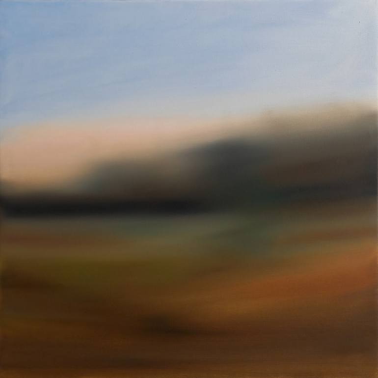 This oil painting represents a landscape that remained in the artist's memory while traveling by car. What she wanted to represent is precisely the movement, the fast passage and the memory left.