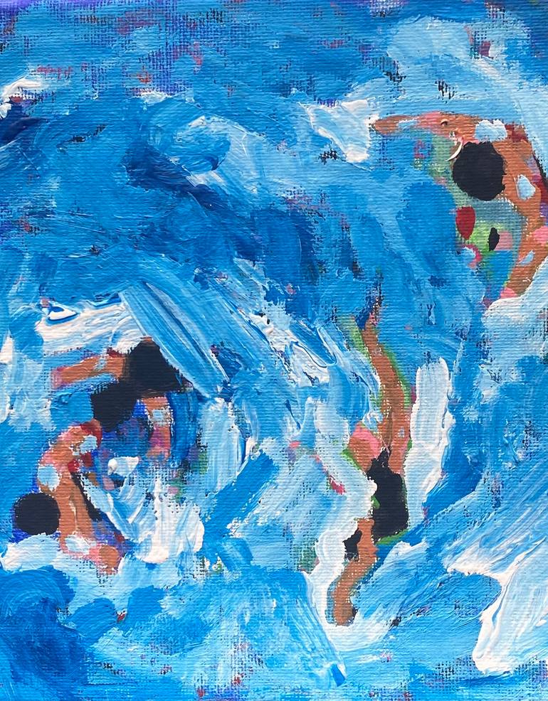 🌊✨ Capturing the joy of swimmers dancing with the waves! 🎨💦 Each brushstroke celebrates the freedom and thrill of ocean adventures. 🌅