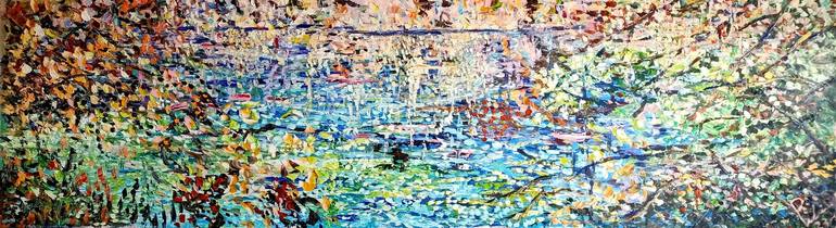 Title: Emerald Reflections Technique: Acrylic on canvas Dimensions: 160x580 cm Year: 2023 Immerse yourself in the enchanting world of "Emerald Reflections," a monumental work of art that captures the very essence of nature and light. This painting combines the painting techniques of Impressionism, ...