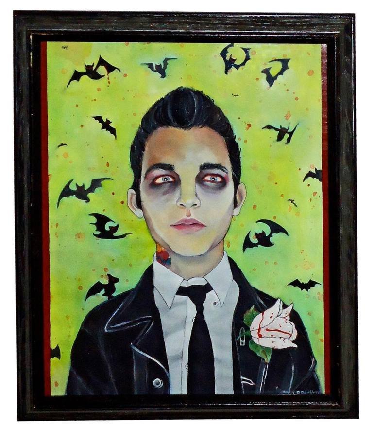 Jennifer is a formally trained artist that is constantly pushing the boundaries of her training and talent. She graduated from the prestigious School of the Art Institute of Chicago and had a residency at The Slade in London, and since then she has exhibited and sold her art at several shows. She is well versed in many mediums and particularly utilizes pens, gouache, oils, printmaking, and spray paint to express her artistic visions. Spray paint has been the medium of choice lately, and her large scale work on concrete and wood canvases has been attracting a lot of attention. What her main focus is the human face, producing zombie-like creatures that express a multitude of emotions, from dead pompadoured greasers brandishing punk rock sneers on giant spray painted boards, to hot rockabilly girls expressing despair and longing. What comes across in her art are original interpretations of her many eclectic influences, giving a new visual representation to such things as rockabilly and gory horror movies. She is fortunate to have the freedom to create whatever her inspiration dictates, but she has also had successful collaborations with clients who have requested specific works from her, and she is always interested in new challenges and demanding projects where her talents can shine.