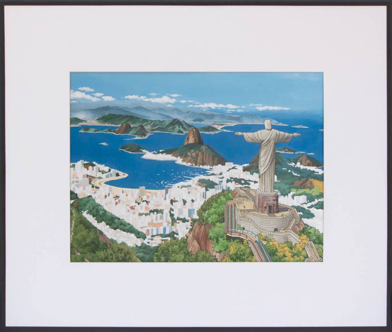 Original acrylic and ink painting ‘Rio de Janeiro’. View from Corcovado mountain. My expressive take on the iconic statue surrounded by an emerald green landscape. The blue waters of Botafogo Bay and the Atlantic Ocean also fade into a hazy horizon. I’ve never had the pleasure of travelling to South...