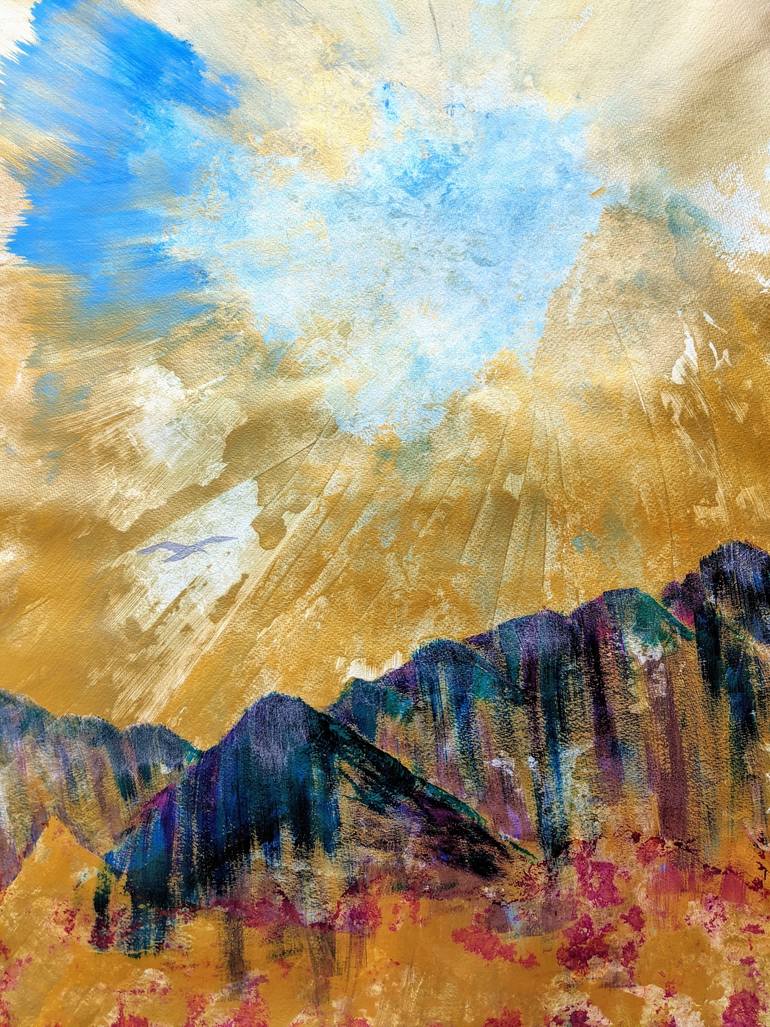 Your divine truth lies in your potential to climb life's mountaintops and Rise To The Heavens. This painting came in layers that culminated into this burst of energy and high vibrational abstract artwork titled, Rise To The Heavens. Several layers and techniques including palette knife, brush, alc...