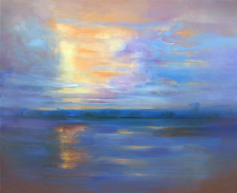 River Sunset Inspired by beautiful sunset This painting is to be shipped rolled in tube.