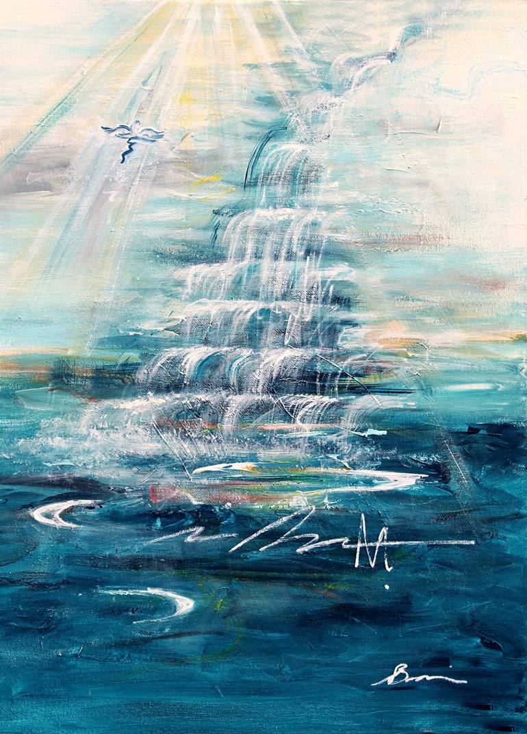 River of Life Celebrating our faith in God. Wonderful piece as a reminder of our Christian faith each day. ✦ ORIGINAL artwork is 20 (W) in. X 16 (H) in., ,75 in. (depth) border Certificate of authenticity provided