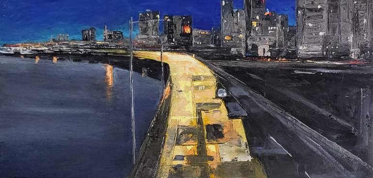 I conclude the day while gazing at the river and the lights of cars in the urban forest.