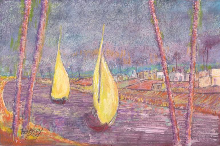 Soft Pastel on Paper, Landscape Inspired by the folklore of the Egyptian countryside