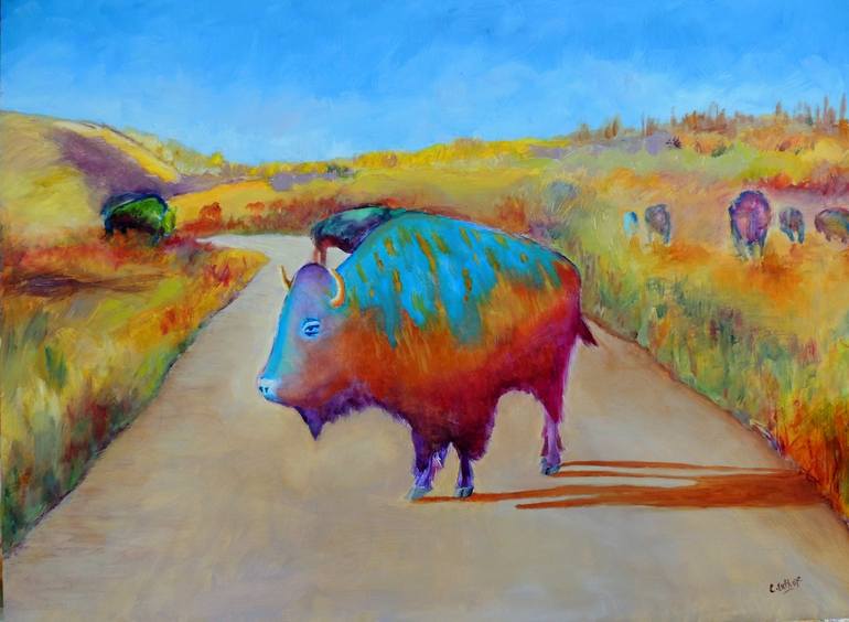The Bison were standing in the middle of the road at Custer State Park in South Dakota. We could not go around them until someone came in the opposite direction and they finally moved. It was kinda scary.