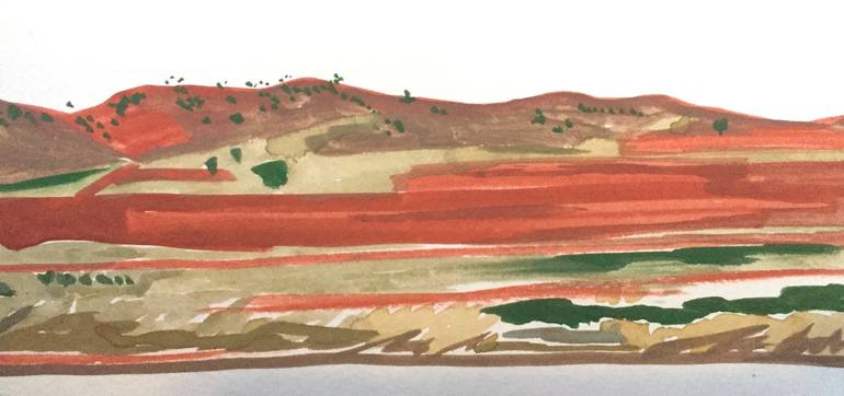 Inspired by Australian Landscape Painter prolific in the 70s & 80s, Fred Williams, I travelled to the dry outback to paint en plein air. On the long drives, I would video the passing landscapes out the window of the car. Back in the busy, distracting hustle of the urban, I developed this series of g...