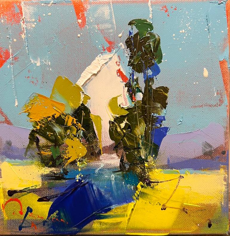 She is so familiar to you, it seems you know every stone on the road. An old poplar tree, across from the fields, around the sun-drenched field... You can go anywhere, but nothing can replace the feeling of home. It is a great happiness to have parents and overcome that road. I use a palette knif...