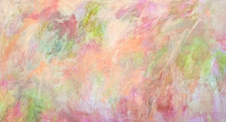 Robin - Original, modern, contemporary abstract. Gestural, spontaneous movement fill the entire canvas in beautiful soft, dramatic colors. Multiple layers and glazes of yellow spring green, peach, sienna, magenta and white with beautiful painterly texture. Vertical or horizontal orientation. Signat...