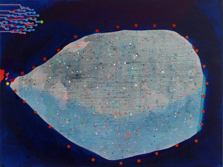 This modern, abstract painting is inspired by a trip to the Isles of Scilly in 2017. Here there are plenty of visual delights. I was inspired by the beautiful rock formations and sea creatures clinging to them. Sometimes nature really does delight and surprise you! This work uses acrylic and metall...