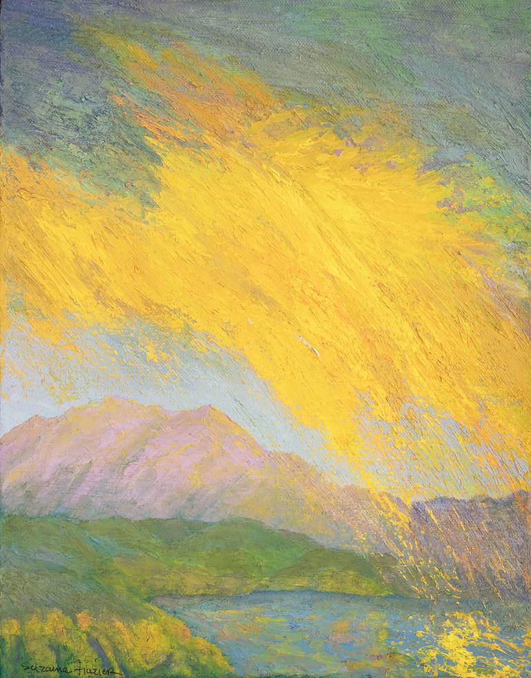 Contemplative Artist, Art Teacher, Retreat Facilitator, Writer Suzanne Frazier has appeared in several video interviews on her YouTube page: Suzanne Frazier - Contemplative Artist. Here is a link: https://youtu.be/ssLGictRtqw Suzanne Frazier gave an extensive interview on her work and her contemplative art expression in a podcast. Here is the link: Artist Statement Viewing the world from a meditative practice, I call myself a Contemplative Artist. To me, contemplative art is the product of creative expression rising from the pure joy of creating, grounded in a meditative connection to the radiance and perfection of spirit known only through one’s experience of being fully human. During a contemplative experience one does not observe anything specific but rather a feeling emerges from the meditation. Likewise, I choose to create work that does not refer to any specific location or time. I choose instead to invite the viewer into my meditation of my collected emotional responses from residing for forty-five years in Colorado. Each painting lives in its own place and time. It breathes on it’s own, free from a particular association, reflecting back to the viewer a new way of seeing. The painting changes as the viewer breathes in detail, subtleties of shape, and nuance of color. Then the painting breathes back to the viewer. A relationship ensues. The painting process begins with heavy application of oil paint with a pallet knife to create texture. After the layer of thick paint dries and hardens, I begin the next layer, painting the contemplated image. Color and texture are the predominate features of my work, especially creating unique hues to reveal a particular mood. After applying untold layers of paint to create unique colors, my interpretation of my heart-centered experience arrives on the canvas. Art is a vehicle for exploring the exterior and interior landscape of our existence on this planet. Using images that are familiar from the environment to express in a non-verbal manner my life experience, I invite you to gaze, without labels, into my shared contemplation. Suzanne Frazier integrates a BFA degree in Studio Arts from the University of Colorado with a BA degree in Philosophy from Lake Erie College to create a philosophical/meditative approach to art making. In September 2015, Suzanne published, Contemplative Art, a book describing her meditative painting process and definition for contemplative art amid images of her cloud paintings.