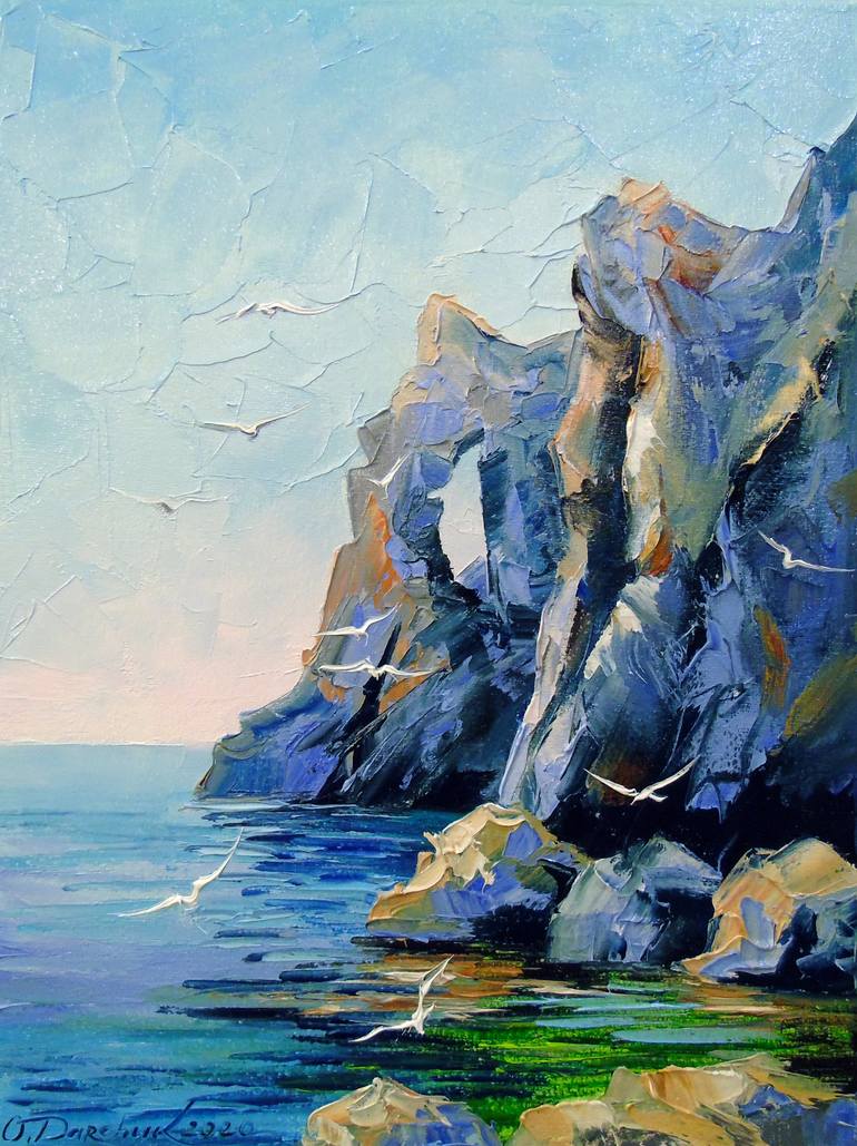 Rocky shore oil painting on canvas, unframed as the edges are painted 100 % handmade with a palette knife and high-quality oil, for the interior or as a gift. It will decorate your interior and will bring joy to you and your family for a long time. Ready to hang. Rocks art, painting, landscape art, ...