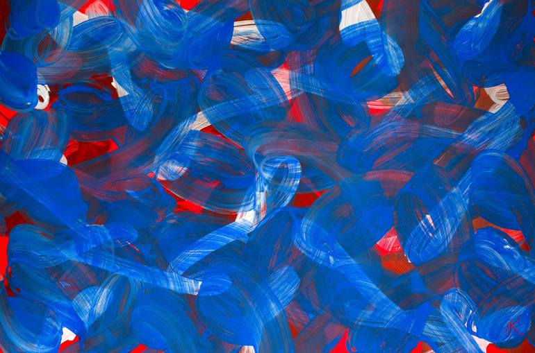 In this painting, the wild brush gestures with and against each other in contrasting colors are reminiscent of the apparent chaos and capriciousness of the weather. The fluidity of the acrylic colors used reinforces the impression of complex mobility. Meteorologists personalize the weather by giving...