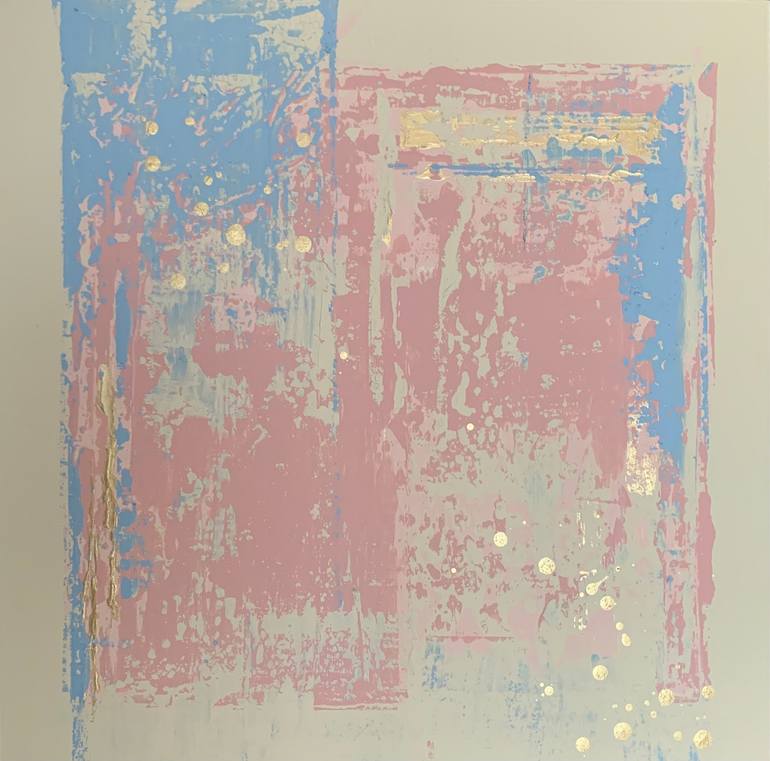 Painting: Acrylic on Canvas. Abstract painting, with pink, light blue and gold. Delicate colors Paintings will arrive with the “CERTIFICATE OF AUTHENTICITY”