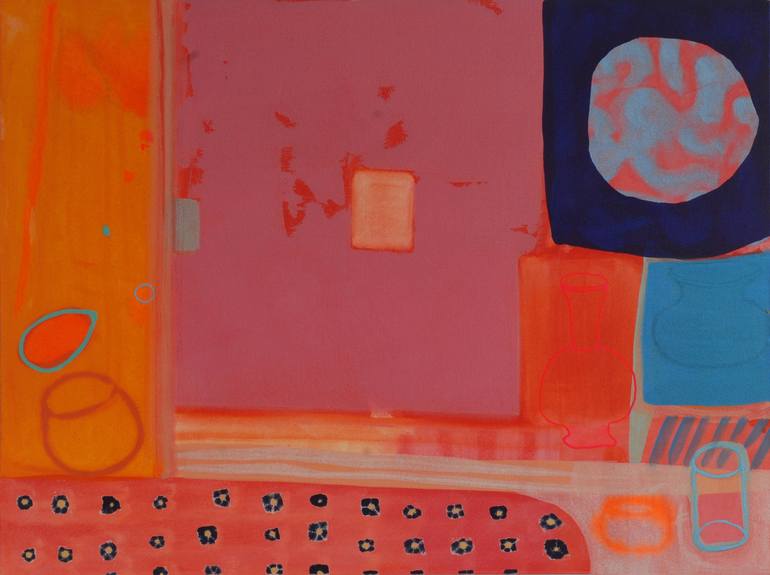 This large contemporary abstract painting is made using acrylic ink on canvas. This painting was made during lockdown when spending much time at home. I was drawing and painting what was immediately around me. I was experimenting with colour as a mood alterer. It takes inspiration from Matisse's int...