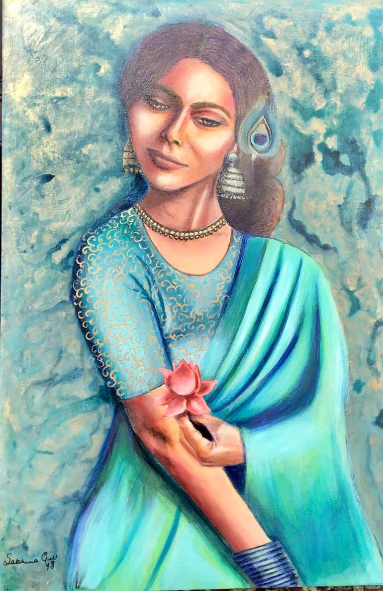 A Sociology graduate from Delhi University by qualification and a spiritualist by instinct, Sabrina has always had an eye for art. She developed a keen interest in the subject at an early age and always knew that she would be an artist; being guided to the subject of her work intuitively. Mentored by accomplished artists and having mastered the skills required to work with most mediums, Sabrina has developed a distinct style in portraiture and landscapes. Most of her work reflects human emotions, with beauty as the central theme. Her compositions are realistic in style and steeped in the enriching experiences of a life well- travelled as well as a mind spiritually inclined. In Sabrina’s own words: “Art is a passion and I believe that learning fuels creativity. There is no end to learning and I intend to keep exploring. Working on a painting transports me into a meditative space, which is therapeutic and a wonderful exercise in mindfulness. Art is a spiritual experience, where all my senses are engaged in creating a beautiful piece of work. The joy of seeing a completed artwork, comes very close to the joy and wonder a mother experiences when she gives birth and far exceeds the thrill of a sale. I spend a minimum of two to three hours of the day at my easel and when in the throes of the creative process, time and surroundings lose their meaning. Art has taught me much but it has also taught me how much more there is to learn and I intend to continue my journey of self- discovery through art for the rest of my life.” Imbued with a strong spirit of community Sabrina marries her art to her social conscience by supporting causes close to her heart. Through the proceeds from the sale of her paintings, she supports terminally ill Cancer patients via organisations such as Cansupport. In addition to her art, Sabrina is a practising Buddhist, (as a member of the Bharat Soka Gakkai), a Reiki master, a tarot card reader, and a gardening enthusiast.