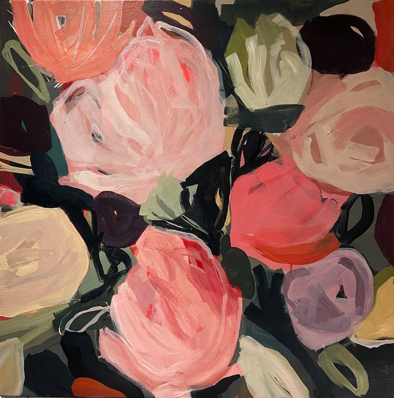 This painting is created using acrylic paint on a canvas. The edges are painted white . This painting explores the beauty of a vase of flowers in an abstract way, capturing the soft colours and movement. I have used a limited palette to explore the range of colours that can be created using just th...