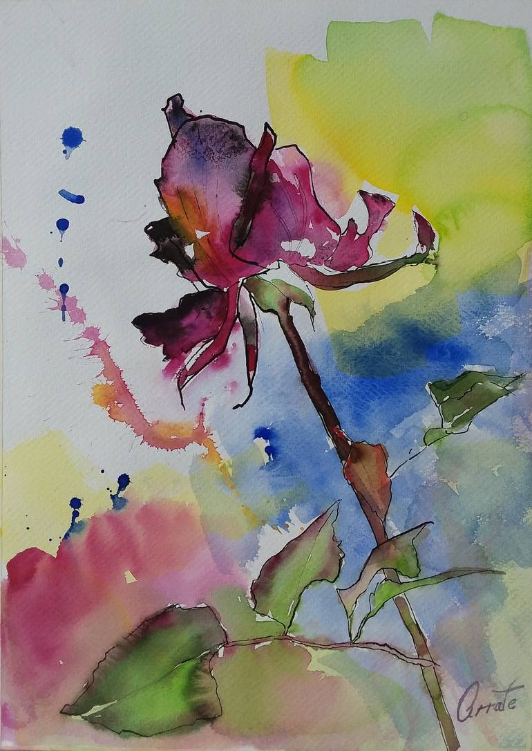 Saatchi Art is pleased to offer the Painting, " Rose withering alone", availeble for purchase at $ 660 USD. Original Painting : Watercolor and Ink on Paper. All my paintings have a certificate of authenticity Today I did not have any roses left in the garden, but I had a great inspiration to see my...