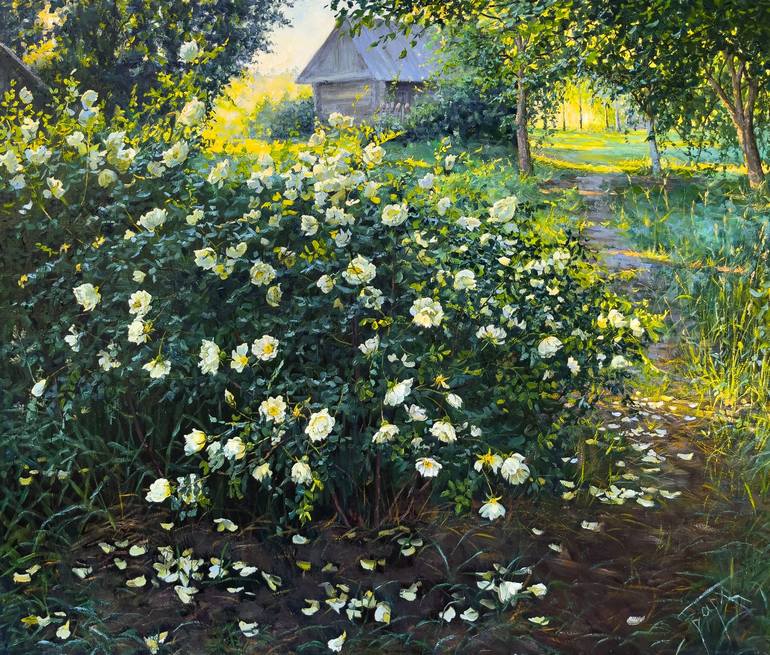 Elena Barkhatkova is a contemporary Belarusian artist who works in easel painting in the still life and landscape genres. She studied with the unsurpassed master of spatial drawing and the great teacher Oleg Lutzevich, who has taught many outstanding Belarusian artists. Elena Barkhatkova paints only from nature. Her canvases gradually come to life in session after session as she devotes months of intensive work to each of her paintings. Her work always demonstrates the complex interaction of color and space, form and movement. Her open still-life composition is enhanced by diagonal lines, as Elena uses all painting techniques at her disposal, including almost imperceptible spherical distortions, thus refuting the static features that have come to characterize the genre. Her tightly composed asymmetric bouquets with their alternating small and large elements create a unique sense of dynamic movement, airiness, and depth. In her landscapes, in which she prefers to dwell on spring and autumn scenes, the artist invariably establishes her strongest compositional emphasis in the foreground, which allows her to work out the other areas of the composition down to the smallest detail without losing the feeling of integrity or the sense of the remoteness of the space. As a follower of traditions in realism, Elena Barkhatkova has been able to perfect her truly modern, world-famous painting style, which is characterized by a powerful and subjective use of color and a pronounced vitality.