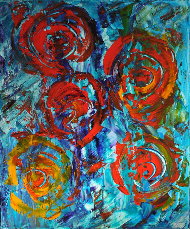 Acrylic and pouring medium on canvas. This painting is with the sides painted so no framing is necessary. Gallery-stretched canvas without staples showing on the sides. It is not wired on the back so you can decide how to hang it like landscape or like portrait format. Artwork created by Danguole Se...